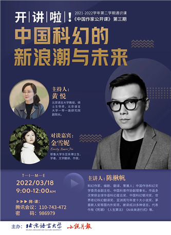 为了让当下鲜活的文学因子注入最广大范围的写作爱好者和读者心中,《小说月报》还和北京语言大学联合开设了大型文学公益课——“中国作家公开课”,线上和线下同步进行,线下主要面向北京语言大学的本硕博不同年级和专业的学生,线上则面向社会公众开放,并同步向伊朗德黑兰大学、伊朗阿拉麦·塔巴塔巴伊大学、伊朗沙希德·贝赫什提大学、埃及英国大学、埃及明亚大学等国外高校中文系直播。该课程于2021年4月正式开课,先后有李敬泽、周大新、石钟山、潘向黎、鲁敏、孙频、马伯庸、陈楸帆等三十多位当下活跃于文学现场的作家、评论家、学者登台授课。今年上学期,鲍尔吉·原野、阿乙、杨庆祥、蒋一谈、星河分别讲授了《构筑文学的独有世界:向内与向外瞭望》《故事是不好的故事》《必将有人重写南方——新南方写作的几个问题》《世界科幻树与当代中国科幻文学》《时间足够你爱——科幻文学与影视》等传统文学和科幻文学写作的热门话题,引发强烈反响。这些课程,一方面为学院式的文学教育提供了文学创作和批评的现场感,直面写作的实践问题;另一方面促使许多初学写作者、基层作者由此找到创作灵感与方法,鼓舞创作信心;中外读者和研究者则能通过这一平台,深切地感受到中国文学现场的蓬勃活力,以及中国作家所展现出的可敬可爱的形象,有助于中国文学的海内外传播。