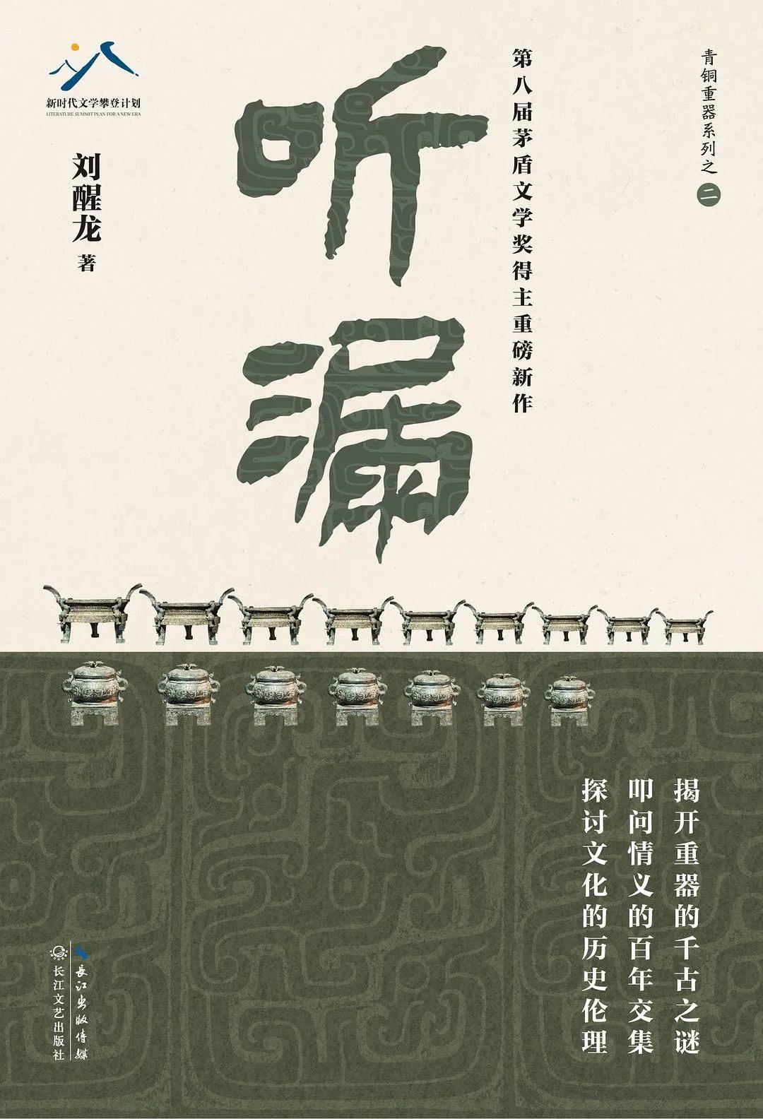 “在历史面前,最能体现王者之气的青铜重器非鼎簋莫属。在辉煌的朝代,青铜鼎簋会让这种辉煌更加灿烂。在衰竭的王朝,青铜鼎簋会将这种衰竭衬托得更加残败。”从《蟠虺》到《听漏》,关于青铜重器的长篇小说,刘醒龙已经写了两部,差不多70万字,直到写出上面这几句话,他才对青铜重器有了较深的体察。