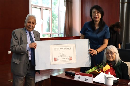 第七届“中坤国际诗歌奖”颁奖 98岁诗人灰娃现场领奖