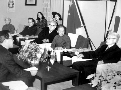 1980年春,巴金(右一)与冰心(右二)访日期间留影