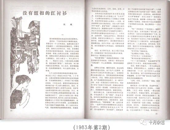 《十月》1983年第2期刊发铁凝中篇小说《没有纽扣的红衬衫》
