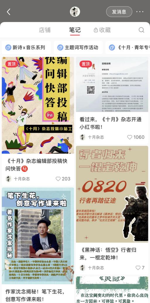 “十月杂志”小红书号界面