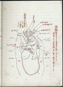 如讲义,藤野先生曾将鲁迅叫去办公室,为他修改解剖学讲义。当时的鲁迅颇为惊讶,在《藤野先生》中这样写自己拿到被批改过的讲义时的情景:“我拿下来打开看时,很吃一惊,同时也感到一种不安和感激。原来我的讲义已经从头到末,都用红笔添改过了,不但增加了许多脱漏的地方,连文法的错误,也都一一订正。……他所改正的讲义,我曾经订成三厚本,收藏着的,将作为永久的纪念。”