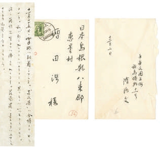 增田涉的上海游学于1931年底结束。分别时,鲁迅将自己的一张照片赠予增田涉,并赠诗《送增田涉君归国》。又一次惜别后,师徒二人开始了五年的书信往来。