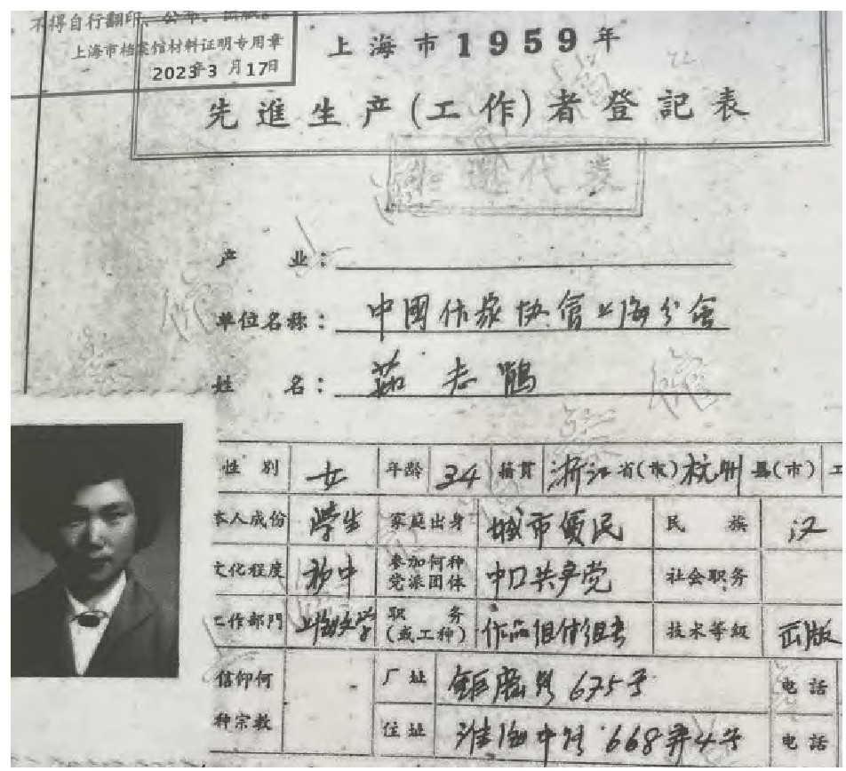 15《上海市1959年先进生产工作者登记表》(茹志鹃),上海档案馆藏,档号:C1-2-3004-95。