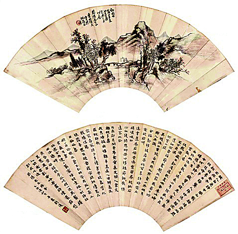 刘半农作品:山水书法扇面