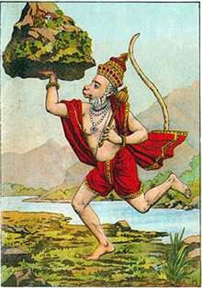 当我们将视线聚焦到以孙悟空为主角的编译文本之中时,“悟空”的形象就不再是单纯的“拿来主义”,而是倾注了译者本人的想象。卫礼贤在《猴子孙悟空》注释中如此描述孙悟空之形:“猴是心的象征,……小说中的猴子让人联想到哈努曼(Hanumant),那位喇嘛的旅伴。……它的名字‘悟空’,即是涅槃觉醒之意。”哈努曼是印度史诗《罗摩衍那》中的猴神,机智神勇,助罗摩解救出悉多(图5)。