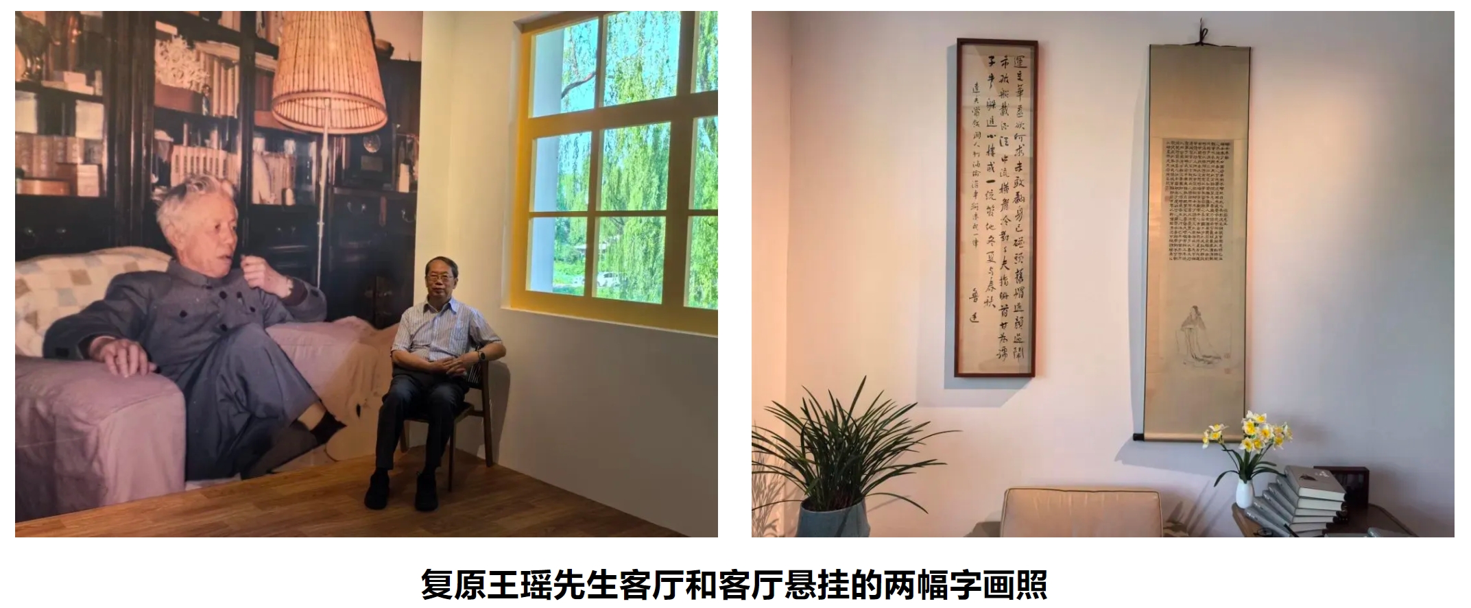 王瑶先生不是收藏家,客厅悬挂的陶渊明画像和鲁迅诗手迹都是复制品,我告诉策展人,应不难找到原先的样本,据此制作就行了。因为,文献展不同于艺术展,其中的书画作品都只是示意而已,目的是制造氛围,起渲染与烘托作用。两位策展人都告诉我,这个要求不难实现。