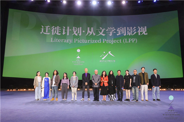 开幕式上,“迁徙计划·从文学到影视”产业单元的推荐委员会委员和入围作品的作家走上主舞台,与观众见面