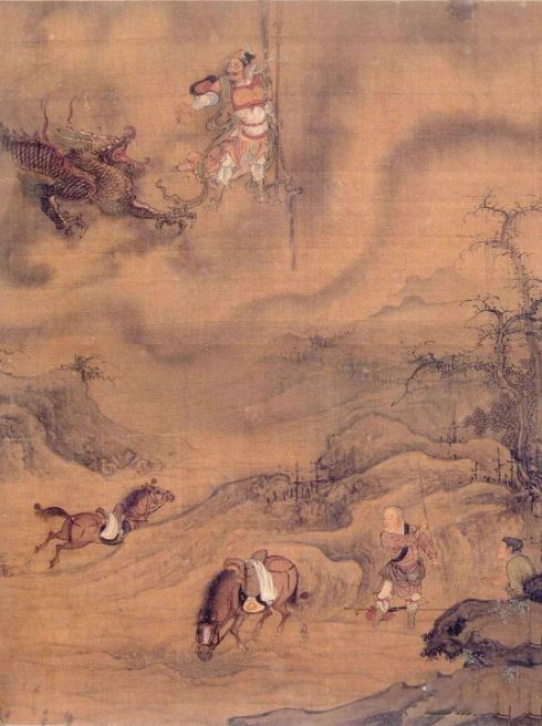 元代画家王振鹏绘制的《唐僧取经图册》之“遇观音得火龙马”