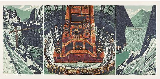 白鹤滩水电站(版画) 墨建杰 作