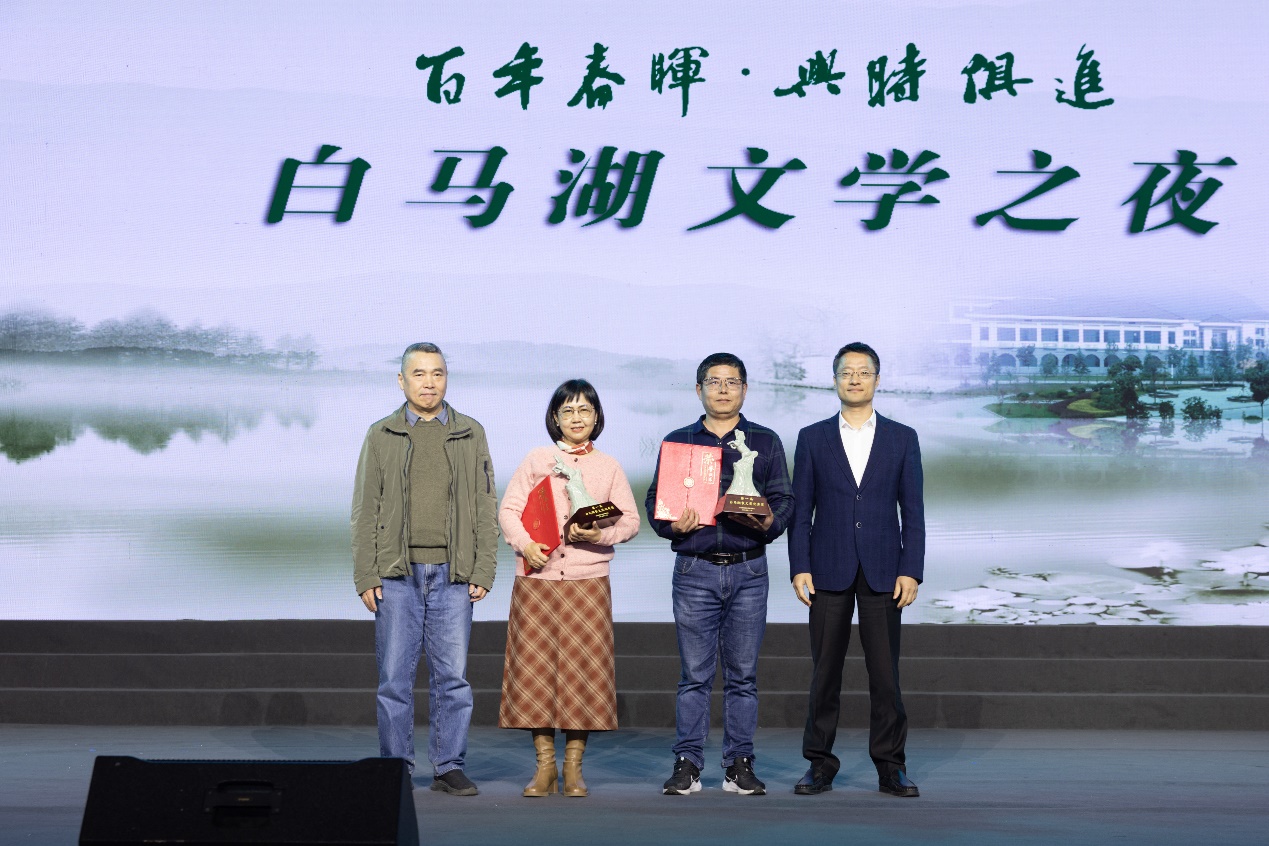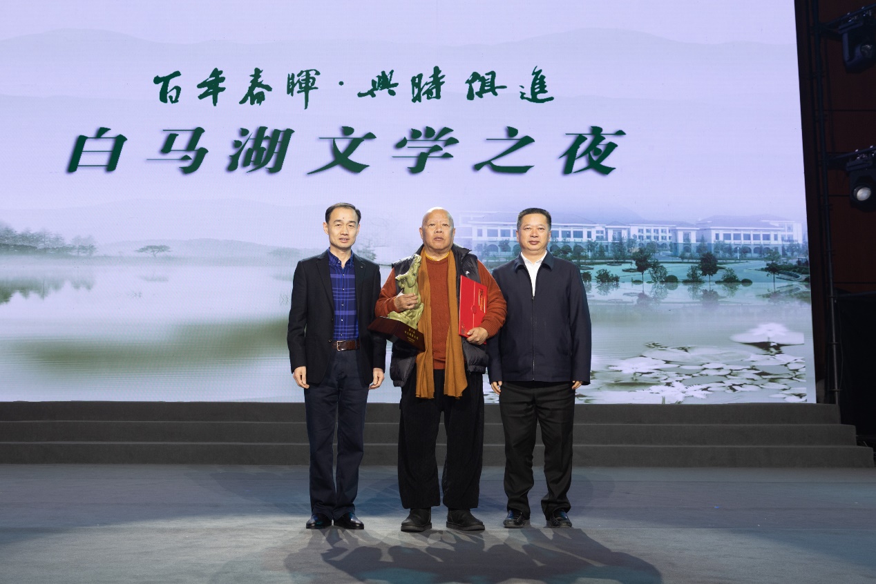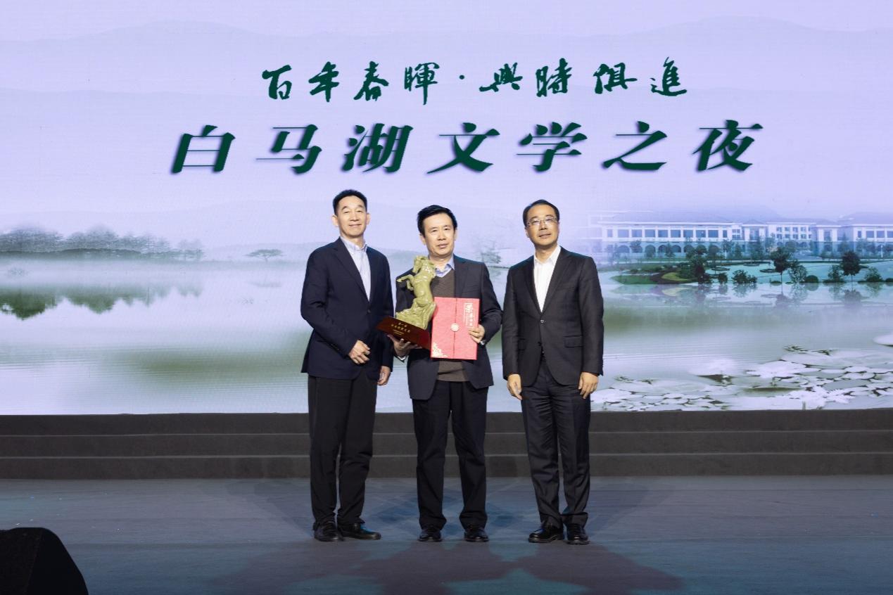 12月1日晚,首届“白马湖散文奖”颁奖暨“白马湖文学之夜”活动在浙江百年名校春晖中学举行。中国作协党组成员、书记处书记、《人民文学》杂志社主编施战军,“白马湖散文奖”评审委员会主任、中国作协副主席白庚胜,浙江省作协主席艾伟,绍兴市副市长、上虞区委书记鲁霞光出席并致辞。《人民文学》杂志社副主编陈涛,老舍文学院专业作家宁肯,北京师范大学教授黄开发,绍兴市委宣传部副部长王洪海,上虞区人大主任陈坚,上虞区政协主席赵文中,上虞区委副书记李海裕,上虞区委常委、宣传部长周晓国等一千多人参加活动。张炜、于坚、习习、李青松、阿舍、鲍坚、赵畅、周吉敏、王冰、李达伟等十名获奖作家现场接受颁奖。