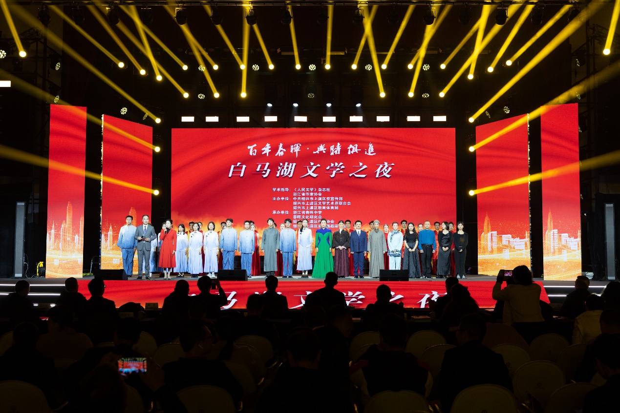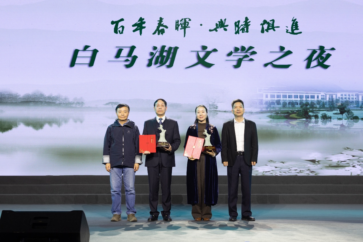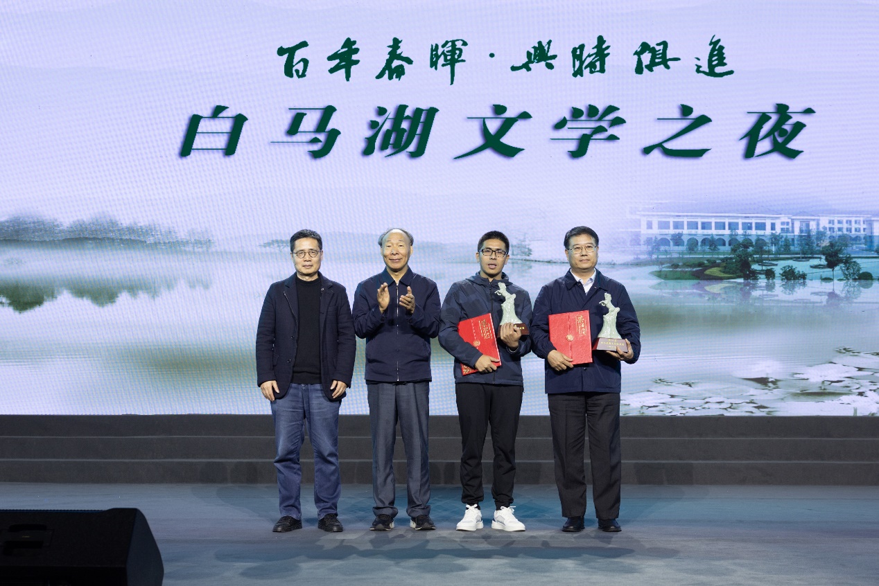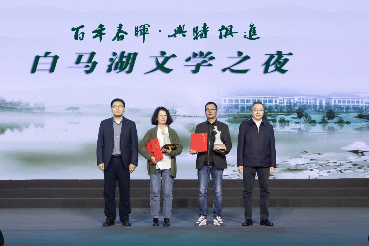 12月1日晚,首届“白马湖散文奖”颁奖暨“白马湖文学之夜”活动在浙江百年名校春晖中学举行。中国作协党组成员、书记处书记、《人民文学》杂志社主编施战军,“白马湖散文奖”评审委员会主任、中国作协副主席白庚胜,浙江省作协主席艾伟,绍兴市副市长、上虞区委书记鲁霞光出席并致辞。《人民文学》杂志社副主编陈涛,老舍文学院专业作家宁肯,北京师范大学教授黄开发,绍兴市委宣传部副部长王洪海,上虞区人大主任陈坚,上虞区政协主席赵文中,上虞区委副书记李海裕,上虞区委常委、宣传部长周晓国等一千多人参加活动。张炜、于坚、习习、李青松、阿舍、鲍坚、赵畅、周吉敏、王冰、李达伟等十名获奖作家现场接受颁奖。