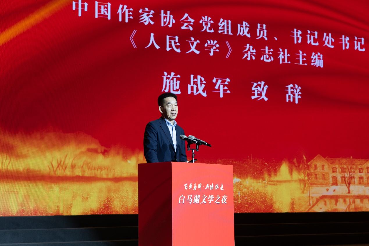 施战军在致辞中说,上虞古老的文化积淀是成熟的、立体的,又是活态的、青春的,这里形成的白马湖文学流派,在现代文学史上影响深远。“白马湖散文奖”在春晖中学庄重热烈地颁发,这个名称和地点,决定了这个奖项有标高、有根脉、有特色。在中华优秀传统文化与现代文明都深厚鲜明的上虞,它必定会成为体现守正创新、推进新时代文学高质量发展的一件实事,必定会丰富和赓续春晖文化,让文学精品的活力汇流在白马湖,再涌入美的诗学与爱的教育的大江大河。
