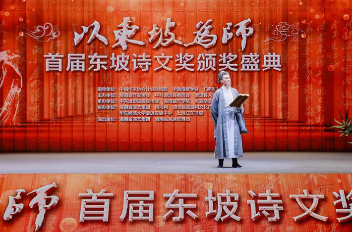 12月7日晚,海南省澄迈县老城镇华东师范大学澄迈实验中学体育馆,华灯绽放,星光璀璨,由海南省作家协会、中共澄迈县委员会、澄迈县人民政府主办,中共澄迈县委宣传部、海南省文学院、天涯杂志社承办的“以东坡为师”首届东坡诗文奖颁奖盛典举行。