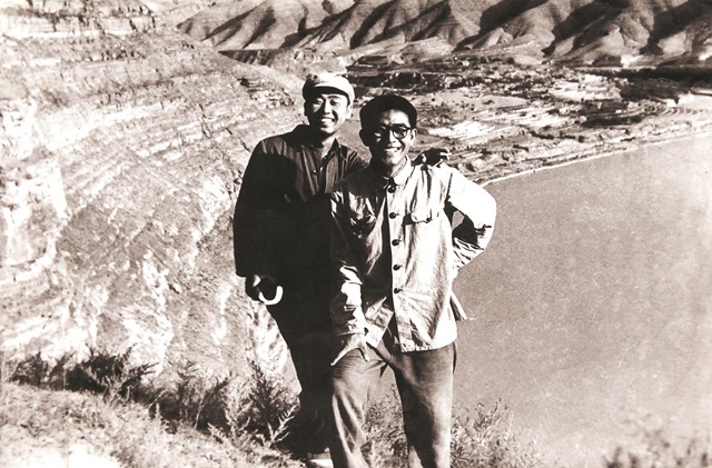 1970年,路遥(左)与曹谷溪在延水关古渡前