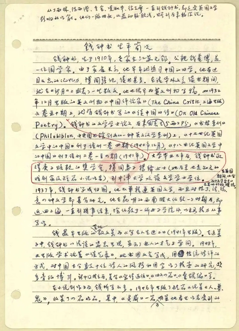 关于钱氏生平,还可参考:《明报月刊》1976年8月号上麦炳坤的《钱钟书的生平和著述》,《中国时报》《人间》副刊1979年6月16—17日上夏志清的《重会钱钟书纪实》。