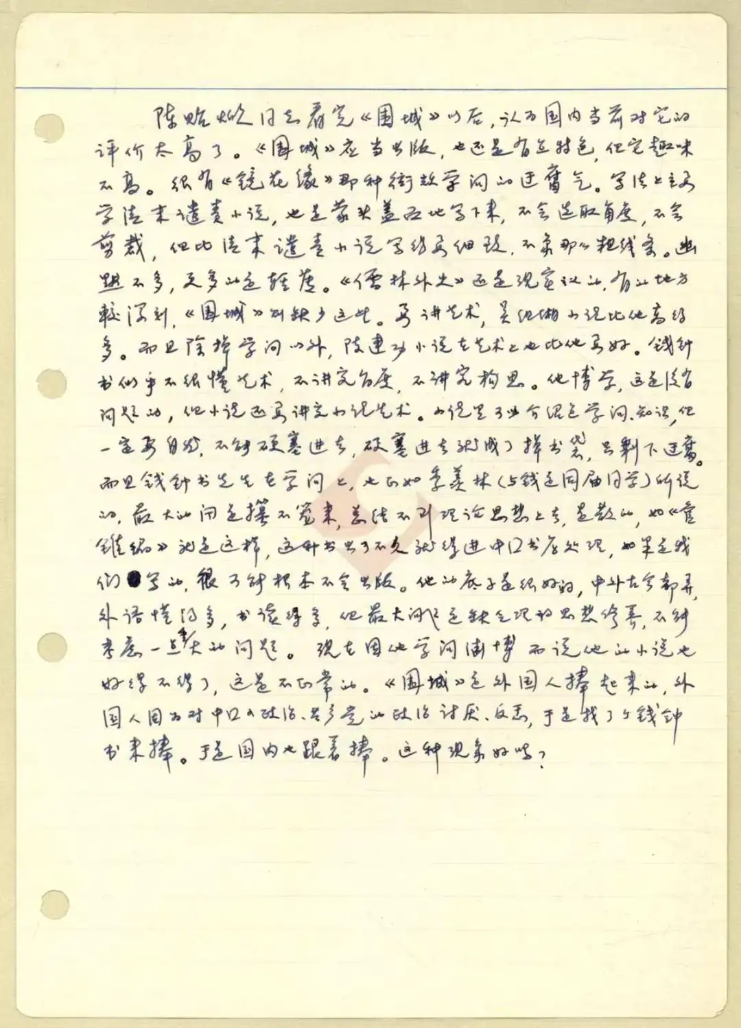 陈艳:关于钱钟书——严家炎的未刊手稿