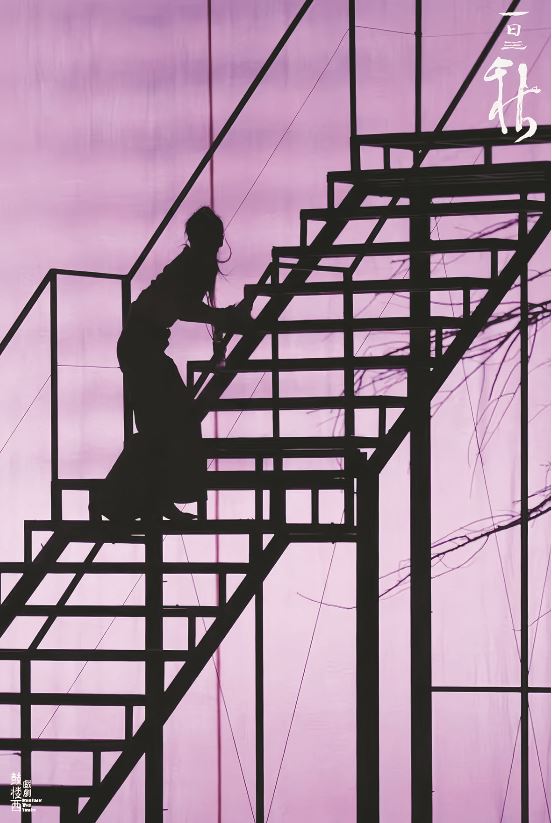 《一日三秋》以黑白灰为主色调的舞台非常空阔,景深空间大,布景层次感强且极为简洁。开场前,舞台正中立着一个巨大的圆盘。这个圆盘设计很容易让人想到《我不是潘金莲》舞台上青花瓷盘造型的转台。除了实现舞台机械的实用功能,圆盘设计还暗示着某种人生循环。除了一架高高的滚轮铁楼梯和升降景片,《一日三秋》的主要道具是召之即来挥之即去的大大小小的滚轮桌椅。这些桌椅有时可以充当人工转台。因为椅背只是框架,简化成了棱角和线条,舞台的写意感便被强化,故事似乎可以发生在任何一个简化了的时空。这种超时空的写意形象在《一句顶一万句》里是背景云图,它的升腾与消散一方面配合着人物的心理活动,另一方面也暗示着大千世界的浩渺;在《我不是潘金莲》里,当李雪莲被污名为潘金莲时,舞台上方垂吊下一个巨大的、白色的、没有五官的旦角“空脸”造型,这是一个面目模糊的“潘金莲”,可以被安上任意一张女性的面孔。