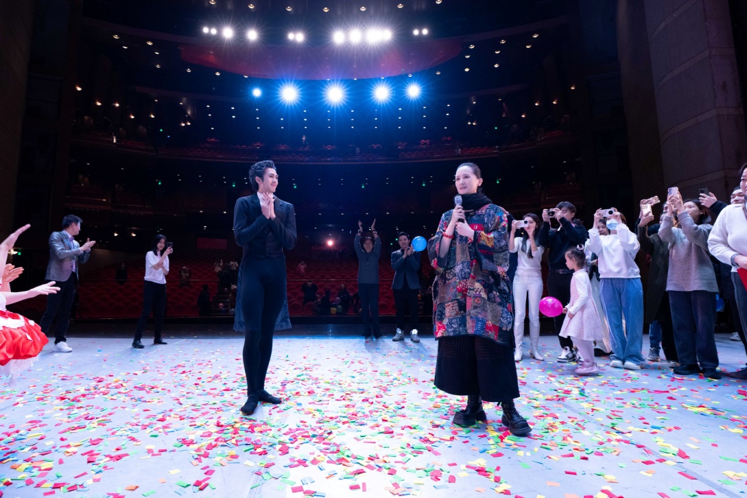 中央芭蕾舞团团长冯英(右)宣布黎文韬晋升为首席主演