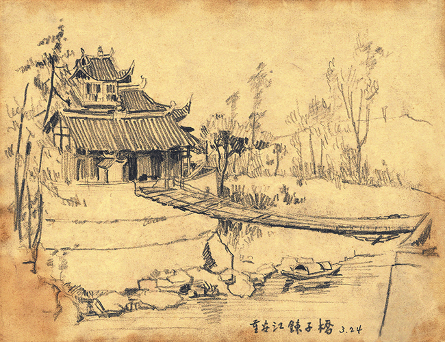 重安江链子桥(纸本铅笔画,1938年3月24日) 闻一多 作