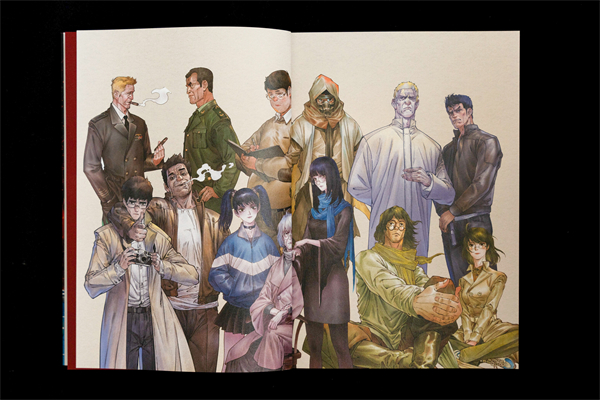 《三体:图像小说》第一部的主要人物形象,第一排左一为汪淼