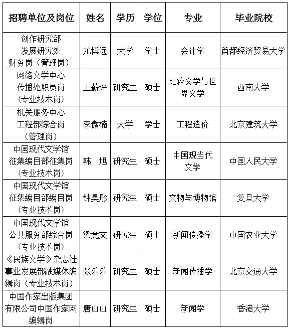 2025年度中国作协所属单位拟聘人员公示(第一批)
