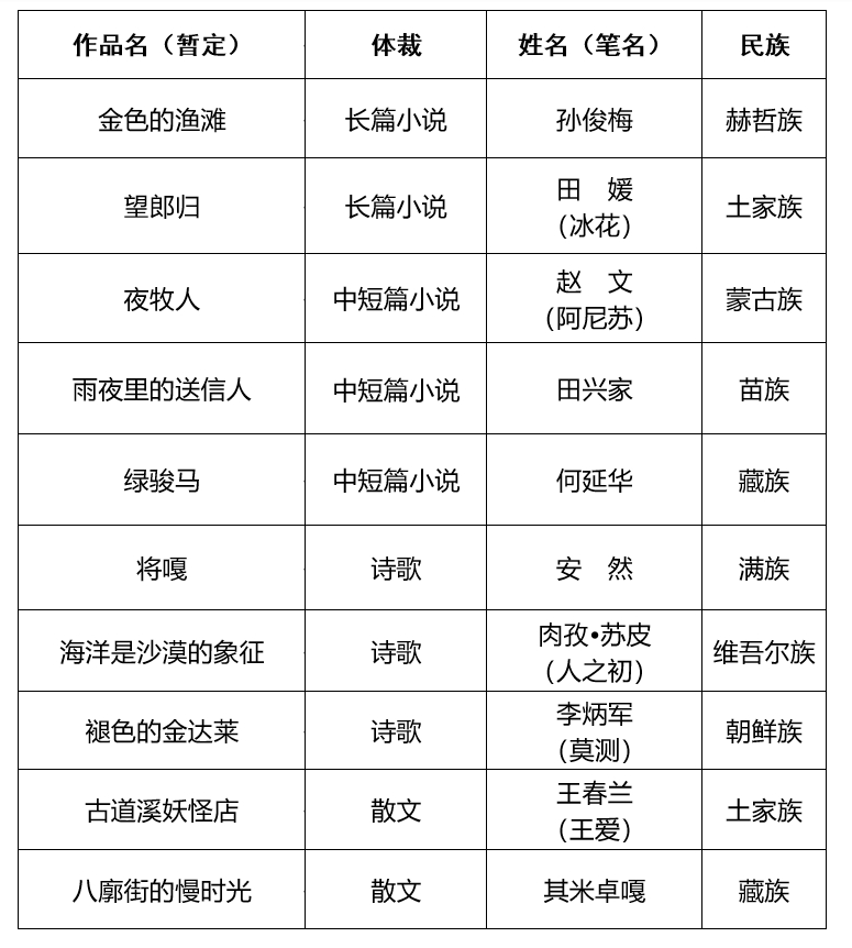 中国作协2025年度“铸牢中华民族共同体意识·中国少数民族文学之星丛书”项目经过专家论证和中国作家协会书记处审批,已确定入选作品10部,拟由作家出版社出版。