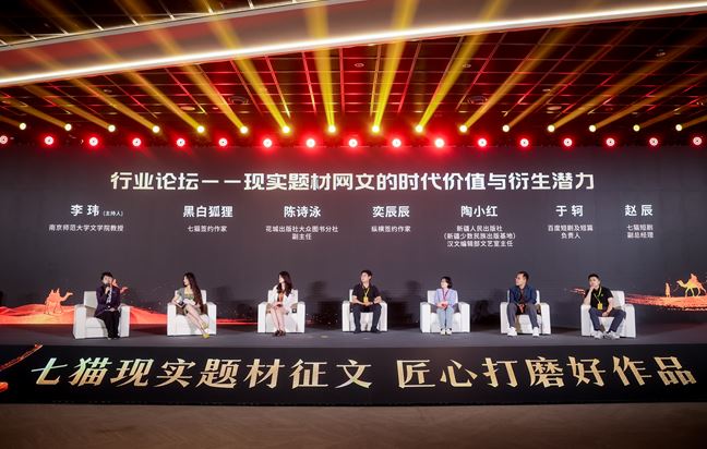 颁奖典礼后,以“现实题材网文的时代价值与衍生潜力”为主题的行业论坛举办,南京师范大学文学院教授李玮、七猫签约作家黑白狐狸、纵横签约作家奕辰辰、花城出版社大众图书分社副主任陈诗泳、新疆人民出版社(新疆少数民族出版基地)汉文编辑部文艺室主任陶小红、百度短剧及短篇负责人于轲、七猫短剧副总经理赵辰等,围绕现实题材的网文创作与影视改编进行讨论和交流。