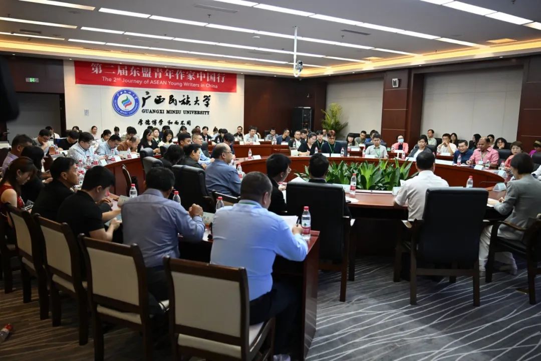启动仪式后举行了中国—东盟青年作家交流座谈会。缅甸作协主席吴翁貌,柬埔寨作协主席布隆布拉尼,《南方文坛》副主编曾攀,马来西亚《马华文学》执行编辑王晋恒,新加坡作家周德成,菲律宾华文作家协会理事蔡友铭,泰国作家贾萨尼·泰颂提,青海省作协副主席索南才让,越南芝文化股份公司创始人、总经理阮丽芝,广西民族大学东语学院印尼语系外教林建杰,老挝辛赛青年作家俱乐部成员安玛达·托沙赖,广州文学艺术创作研究院专业作家陈崇正先后发言。