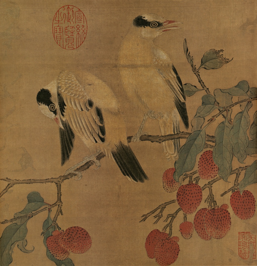 宋代《离支伯赵图》是一幅典型的南宋院体花鸟画,现藏于台北故宫博物院。红黑大胆对比,设色妍丽,用笔细腻。该画以荔枝和伯劳鸟(伯赵)为主题,展现了宋代宫廷绘画的精湛技艺与象征寓意。谐音“利枝”或“离支”,象征“吉利”或“连理”,在宋代宫廷文化中常被赋予富贵、祥瑞的寓意。伯劳鸟:在古代被视为“报喜鸟”,与荔枝结合,可能暗含“报喜”“大吉”之意。