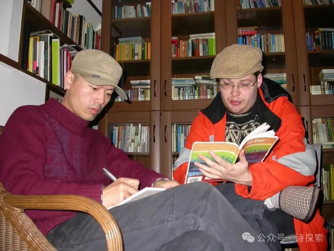 2006年与黄梵第一本诗歌英译集译者、汉学家石峻山在黄梵家书房合影