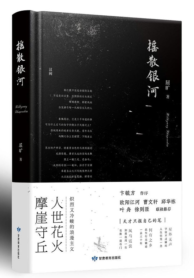 《摇散银河》精选了作家屈旷(江映烛)近十年的诗歌188首。本诗集分九个小辑,分别为星外无声、何有之乡、人世花火、无涯之地、摩崖守丘、雪与空城、清醒楚门、风马霓裳、周游六漠。内容囊括了故乡漫游、历史珠玑、科幻赛博、城市生活等多个维度,文字具有强大的原始生命力和浪漫主义气息,既有 对中国传统文学的训诂考据,又尝试开辟新的道路,确保诗歌的先锋性。