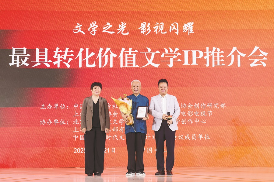在近日举办的“文学之光 影视闪耀——最具转化价值文学IP推介会”现场,中国作协向第四代导演谢飞颁发了“文影双馨”特别纪念牌,以感谢他在文学改编影视领域作出的贡献。谢飞的导演生涯与文学密不可分,其执导的9部电影、2部电视剧均根据文学作品改编。几十年游走于创作与教学之间的他,不仅站在文学的肩膀上推动中国电影走向国际舞台,更培育了陈凯歌、田壮壮、黄建新、贾樟柯等第五、六代导演领军人物,把尊重作家、尊重文学的理念深植入电影人心间。