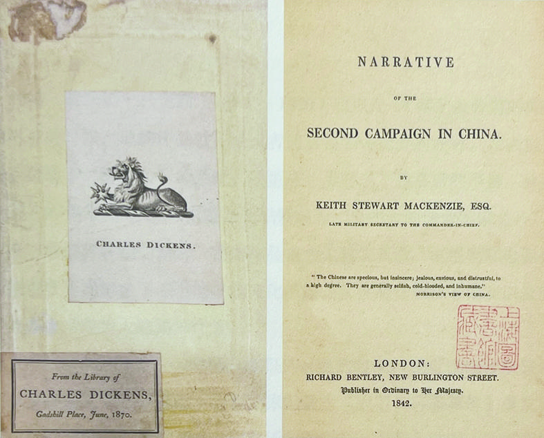 狄更斯的藏书和纹章藏书票(左),徐家汇藏书楼提供