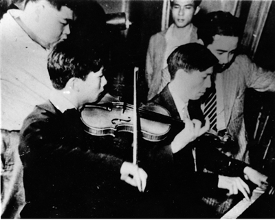 图为1933年任光(弹钢琴者)与聂耳(拉小提琴者)在合奏。