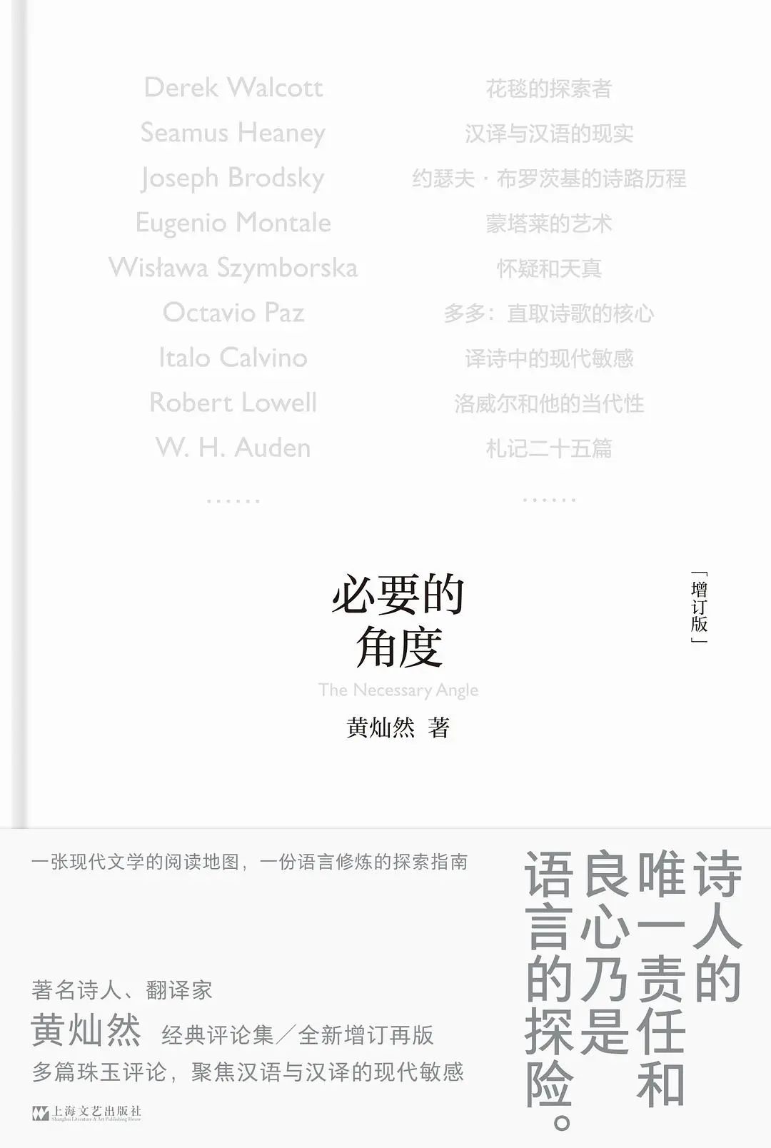 黄灿然:这本书还是给很多年轻人带来帮助的。我想,这是因为我写这部评论集的年龄,刚好在三十岁至三十五岁之间,我自己刚好在成熟中,这对年轻人有吸引力。因为这种书比较稀罕,在我那个年龄而又有我那种见解和视野而又能写一部评论集又注意现代汉语的敏感性的人,几乎没有,尤其是在那个年代。年轻人也许需要引导,可谁能打动他们?更重要的是我这本评论集并不是为了引导他们而写的,而是我作为一个成长中和成熟中的作者的试笔。所以我可以说是跟年轻人同步的,如果不是同步也是同路,而我只是稍微走得远些,但又在他们的视力范围内。要再版的时候,我是有点害怕的。当我拿到排印稿的时候,我知道害怕是没用的,所以我一边看一边修改,逐渐形成了大幅修订的概念。我修改到我能接受或忍受的程度,又增加了一些同时期的文章。其他的,我在后记中都有交代。我的观念有没有改变我也不好说,但肯定跟后来的有某种延续性。我没有急着要出新评论集的冲动,相反,十多年来不知道有多少出版社希望出版我的下一部评论集,甚至有同一家出版社不同编辑来问的,我一概以还没准备好为理由婉拒了;《必要的角度》的再版也被问过几次。我下一部评论集,我原打算再写几篇长文,但没时间,有时间也不一定能写或能写好,包括一篇谈杜甫的,一篇谈马勒的,一篇谈疾病与营养与写作的关系的。但我也想开了,有时间我会整理一下,不等我那些等不到的文章,先结集出版,将来如果写了我想写的文章,再收进增订本里。