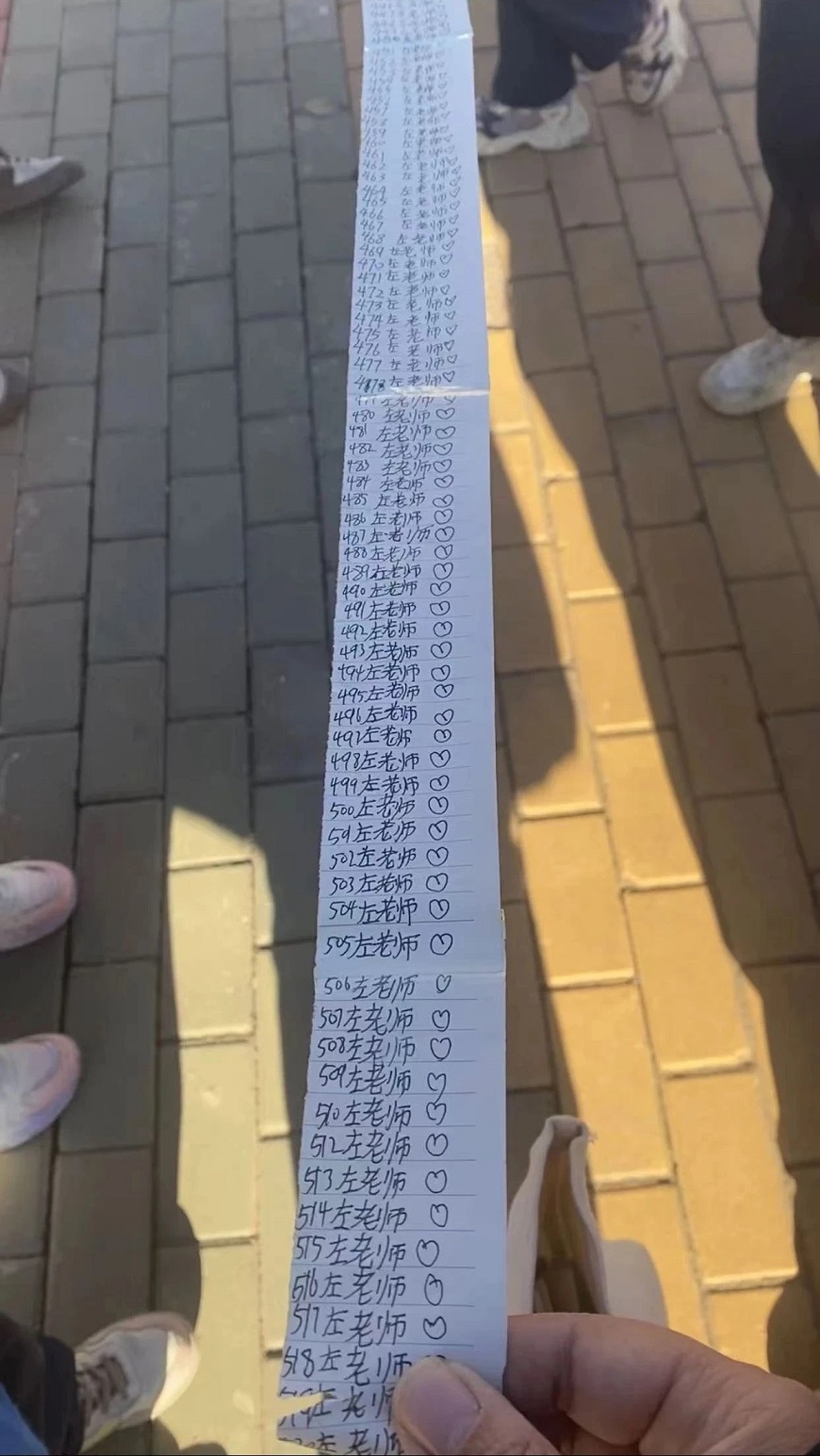 这一年里,左昡收到了太多来自孩子们的礼物。第一学期,孩子们送她手写的520遍左老师❤️,第二学期,他们送她的同样的纸卷上,手写的这份心意变成了1314遍。