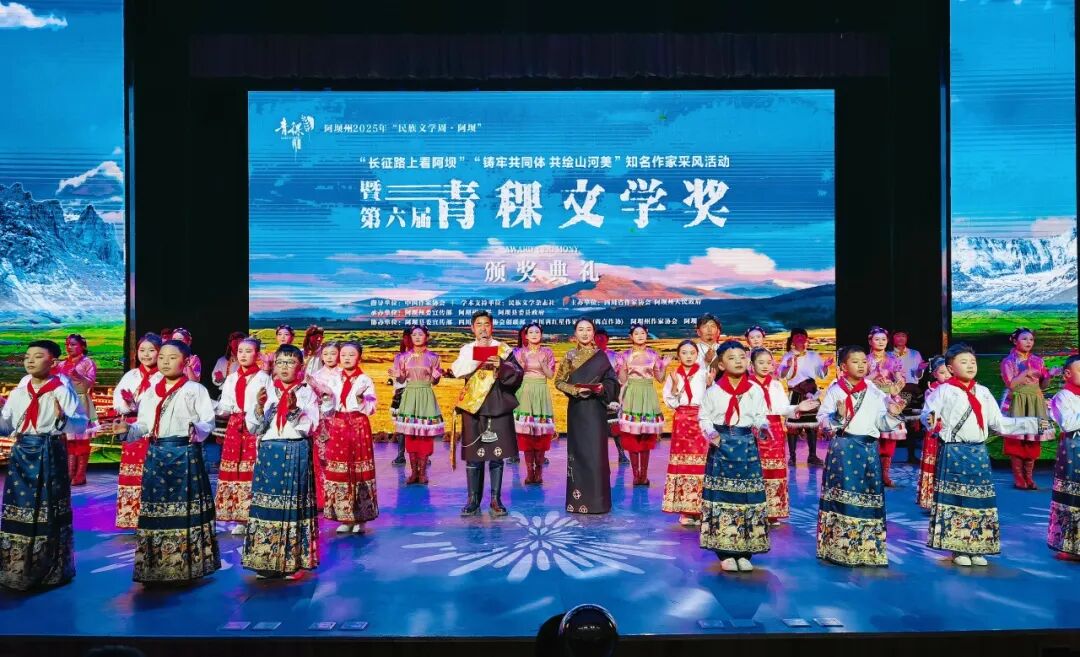 2025年“民族文学周·阿坝”活动期间,由民族文学杂志社提供学术支持,四川省作家协会、四川阿坝州人民政府主办,阿坝州委宣传部、阿坝州文联、阿坝县委、县政府承办,阿坝县委宣传部、四川省作家协会创联部、四川省红星作家协会(省直作协)、阿坝州作家协会、阿坝县文联协办的第六届青稞文学奖颁奖典礼于9月8日晚在四川阿坝州阿坝县成功举办。中国作协党组成员、书记处书记李一鸣,《民族文学》主编陈亚军、副主编朱钢,四川省人大常委会委员、省人大监察和司法委副主任委员、中国作协南亚国际文学交流中心执行主任、四川省作协副主席侯志明,四川省作协党组副书记鲁娟,中共阿坝州委常委、宣传部部长依当措,阿坝州委常委、阿坝县委书记冯峥勇,阿坝州政协副主席何晓兵,阿坝州文联党组书记、主席阿郎,阿坝县委副书记陈波,阿坝县委常委、副县长唐建勇,王怀林、范稳、马丽华、鲁若迪基、尼玛潘多、谭五昌、衣向东、巴久乌嘎、王丽一、杨国锋等知名作家、第六届青稞文学奖获奖作家,以及阿坝州作家代表、阿坝县机关干部、学生群众代表等齐聚一堂,共同见证这一文学盛会。