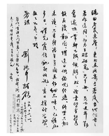“瑞田老友惠鉴:来书并所寄专著及当代作者之著作,连同‘好太王碑研究’共十册。足下近年勤奋逾恒,笔耕不辍,佩服之至。诸书皆有特色,故反复翻阅,惜连日仍俗冗纷乘,终于只翻未读,只有待浮生有闲再仔细品味了。已积压多日,谨先覆信,驰报收讫,容日探讨学习。匆匆不尽。即颂著祺。刘乃中拜启。”