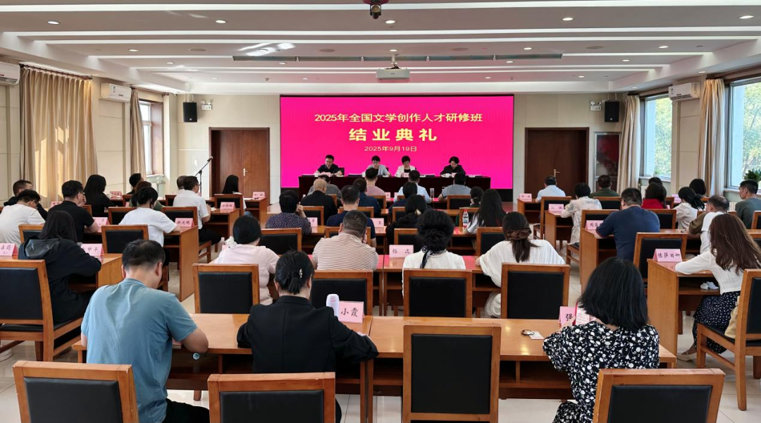9月19日,2025年全国文学创作人才研修班结业典礼在京举行。来自全国各地的50名作家圆满完成学习研修任务,顺利结业。鲁迅文学院常务副院长李东华、中宣部文艺局理论文学处三级调研员朱昱熹、鲁迅文学院副院长张明远出席结业典礼,并为学员们颁发结业证书。结业典礼由鲁迅文学院副院长郭艳主持。