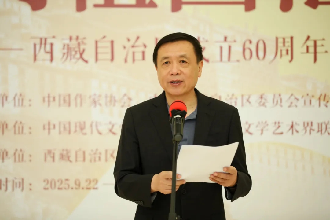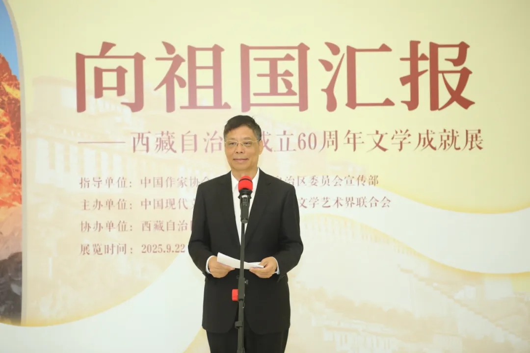 汪海洲表示,“向祖国汇报——西藏自治区成立60周年文学成就展”是西藏自治区成立60年来第一次在京举办的文学类展览,旨在全景展现西藏文学及广大作家深入践行习近平文化思想,在时代发展中坚持传统与现代、叙事与抒情相结合,为人民书写、为人民放歌的美好景象,展现西藏60年来文学创作的辉煌成绩。此次展览承载着西藏作家对党和国家的赤子之心,凝聚着雪域儿女对中华文化的热爱,为展示社会主义现代化新西藏的良好形象发挥了积极作用。希望广大作家以铸牢中华民族共同体意识、推进中华民族共同体建设为主线,从各族干部团结一心、努力拼搏建设社会主义现代化新西藏的火热实践中汲取养分,用文学的表达讲好新时代新西藏的故事,推出更多无愧于时代、无愧于人民的优秀文学作品。