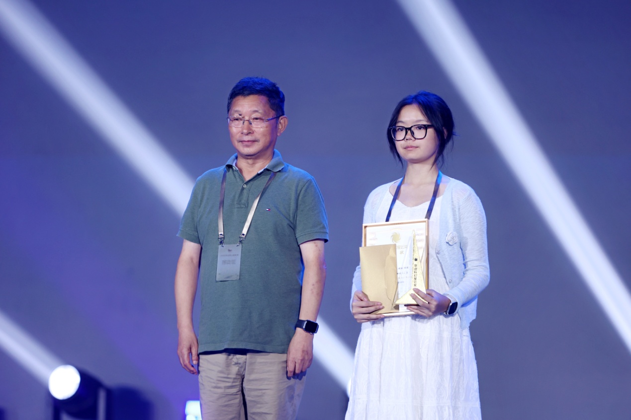阿来在颁奖典礼上致辞,并为本届星云奖青少年科幻征文大赛中学组金奖获得者颁奖。