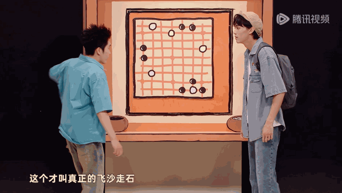 这有点像先锋派艺术常用的“拼接”。不难发现,技能五子棋学校在言说之时,非常喜欢将自己的话语直接联系到小品之外、现实世界的某个元素中。譬如,在解释何为飞沙走石时,张兴朝大吼一声“问得好”,随后说道:“所谓飞沙走石,就是将对方的棋子,直接扔进……什刹海!”在此,“什刹海”呈现为现实世界的一个碎片,其并没有任何出现的理由,仅仅是被并置在飞沙走石技能一侧。与之相关的还有,张兴朝假扮保洁,用扫帚摆了一下张呈的裤子,后者抱怨“别弄,我这是新裤子”,前者立刻接话:“你你你,你要跳舞吗?”张呈使出“力拔山兮”后,对方立刻发动一招“两级反转”,结果搬出的是张呈抖音账号中的一张经典(黑历史)照片。被王广击败后,张兴朝躺在地上装死,还不忘加上一句“APT, APT”。甚至有一些笑点,虽然没有直接对现实进行照相术般的复刻,但其中也能够看出现实碎片。比如,张兴朝对张呈怒吼“如果你下棋就是为了赢的话,那你和那些下棋的有什么区别!”又或者“你这个畜生”。这些话语确实并没有直接调用现实素材,但它调用了现实中的某种逻辑,并将其从其原生语境中暴力撕扯下来,使其成为一个个孤立的、悬置的片段。这些现实碎片被无中介地和言语的行进主题并置,才是更为主流的笑点。