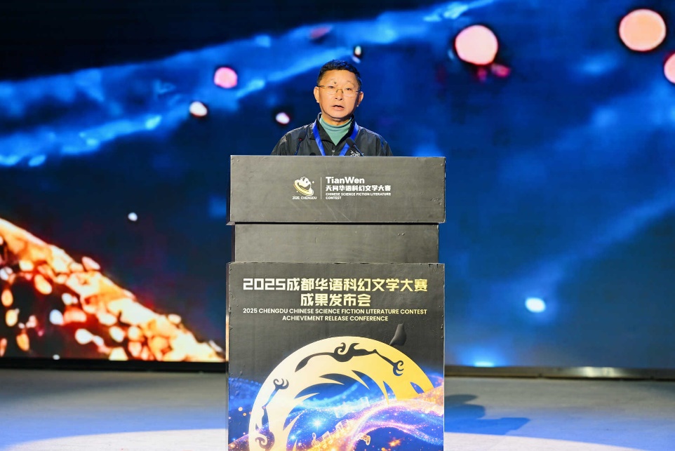 10月24日,由中国作协指导、成都市政府主办的“2025成都第二届‘天问’华语科幻文学大赛成果发布会”在成都郫都区成都科幻馆举行。中华文学基金会理事长,中国作协原党组成员、书记处书记施战军,中国作协副主席、四川作协主席阿来,成都市委常委、宣传部部长辜学斌,中国科普作协副理事长兼秘书长陈玲,81届世界科幻大会主席本·亚诺,《星球大战》动画剧集出品人阿特尔·伊索姆、好莱坞动画导演道尔顿·格兰特,王晋康、何夕、宝树、杨晚晴、海漄、阿缺、段子期、武荭、顾奕等科幻作家、编剧与会。刘慈欣、罗伯特·索耶、理查德·泰勒、巴勃罗·巴斯克、弗朗西斯科·沃尔索等世界各地的科幻作家发来视频祝贺。