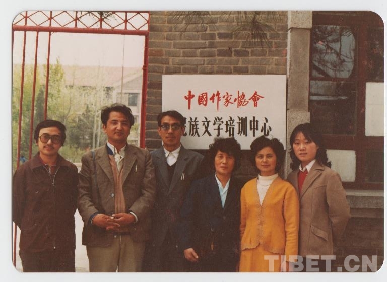 图为在民族文学杂志社任职期间,吉米平阶(左一)和同事合影
