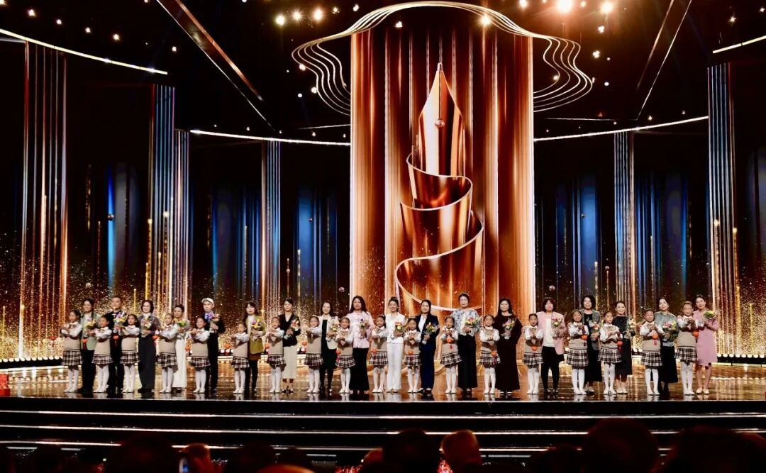 本次盛典将庄重典雅的文学颁奖典礼与气氛热烈、传播力强的电视晚会和网络平台直播深度融合,精选儿童文学相关内容进行创意编排,以灵动活泼、隆重丰富的节目形态,生动展现儿童文学的独特魅力,深情表达儿童文学作家对美好纯真童年的温暖呵护,引导广大少年儿童在文学阅读中收获真善美,获得健康成长的坚实力量。开场秀《造梦家》带领观众闯入书本中的奇幻世界,儿歌连连唱《听妈妈讲那过去的事情》唤起全民童年记忆,创意音乐秀《陪我长大的朋友》重现黑猫警长、哪吒、孙悟空、雪孩子等经典角色,舞蹈《瓷影》展现中华文明的传承创新,歌曲《用尽我的一切奔向你》《最好的未来》深情传递爱与希望的力量。现场还播放了《清溪漫记:一堂特别的读书会》视频短片,生动记录了儿童文学作家金波与小朋友们的交流互动;播放短片《全世界书迷的告白》,特别向儿童文学作家曹文轩致敬;播放以蔡皋、祁智、蔡崇达为主角的短片,以影像方式展现作家作品背后的感人故事。来自中国作协定点帮扶县甘肃省临潭县的6名小朋友也来到盛典现场,与大家共同见证属于儿童文学的闪烁星光。