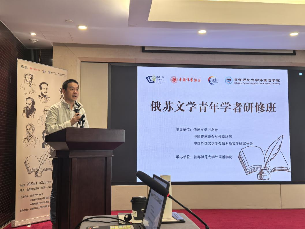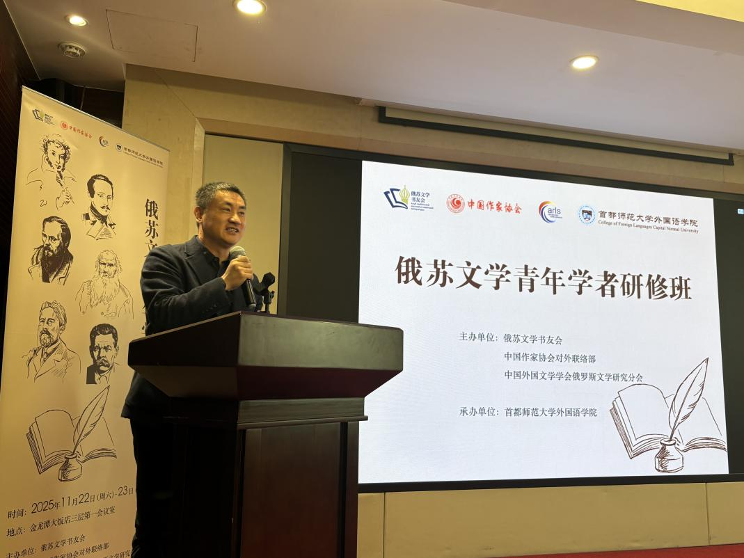 为赓续中俄文学交流传统,深化两国人文合作,2025年11月22日至23日,“俄苏文学青年学者研修班”在京成功举行。作为“俄苏文学书友会”的重要活动之一,本次研修班由中国作家协会对外联络部、中国外国文学学会俄罗斯文学研究分会主办,首都师范大学外国语学院承办,旨在凝聚青年人才、提升研究水平,积极构建俄苏文学研究的“中国学派”。“俄苏文学书友会”是在中宣部文艺局的指导下,由中国作协外联部联合有关部门发起的常态化、专业化、公众化的中俄人文交流平台。