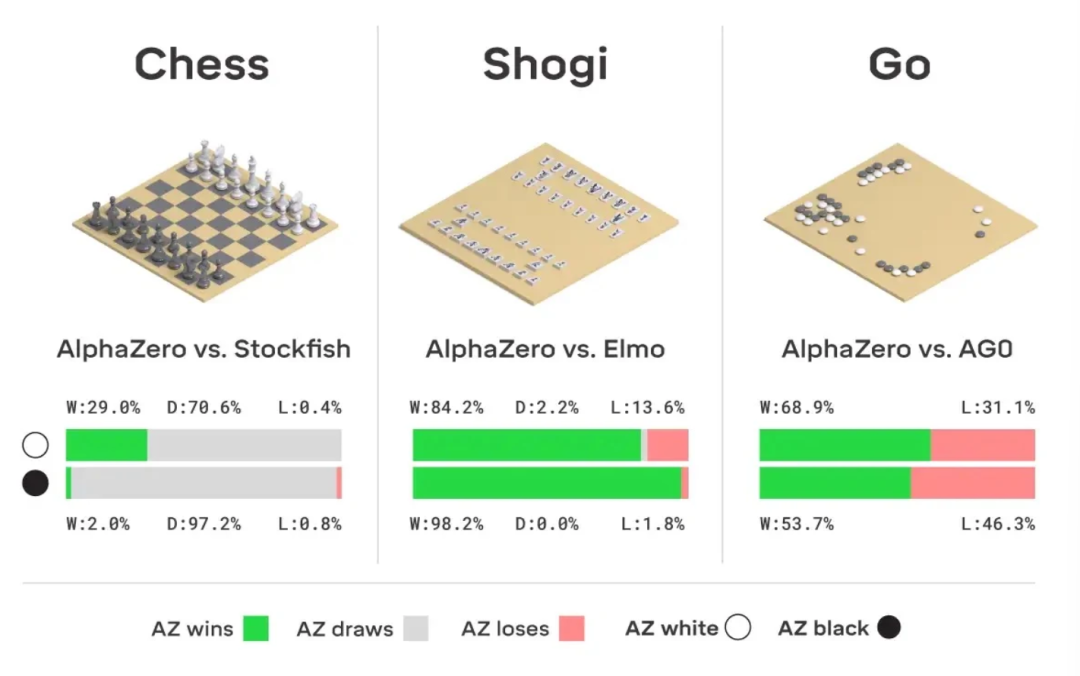 在国际象棋、将棋比赛中,AlphaZero轻易击败了人类世界冠军。在围棋比赛中,它也击败了人工智能AlphaGo Zero