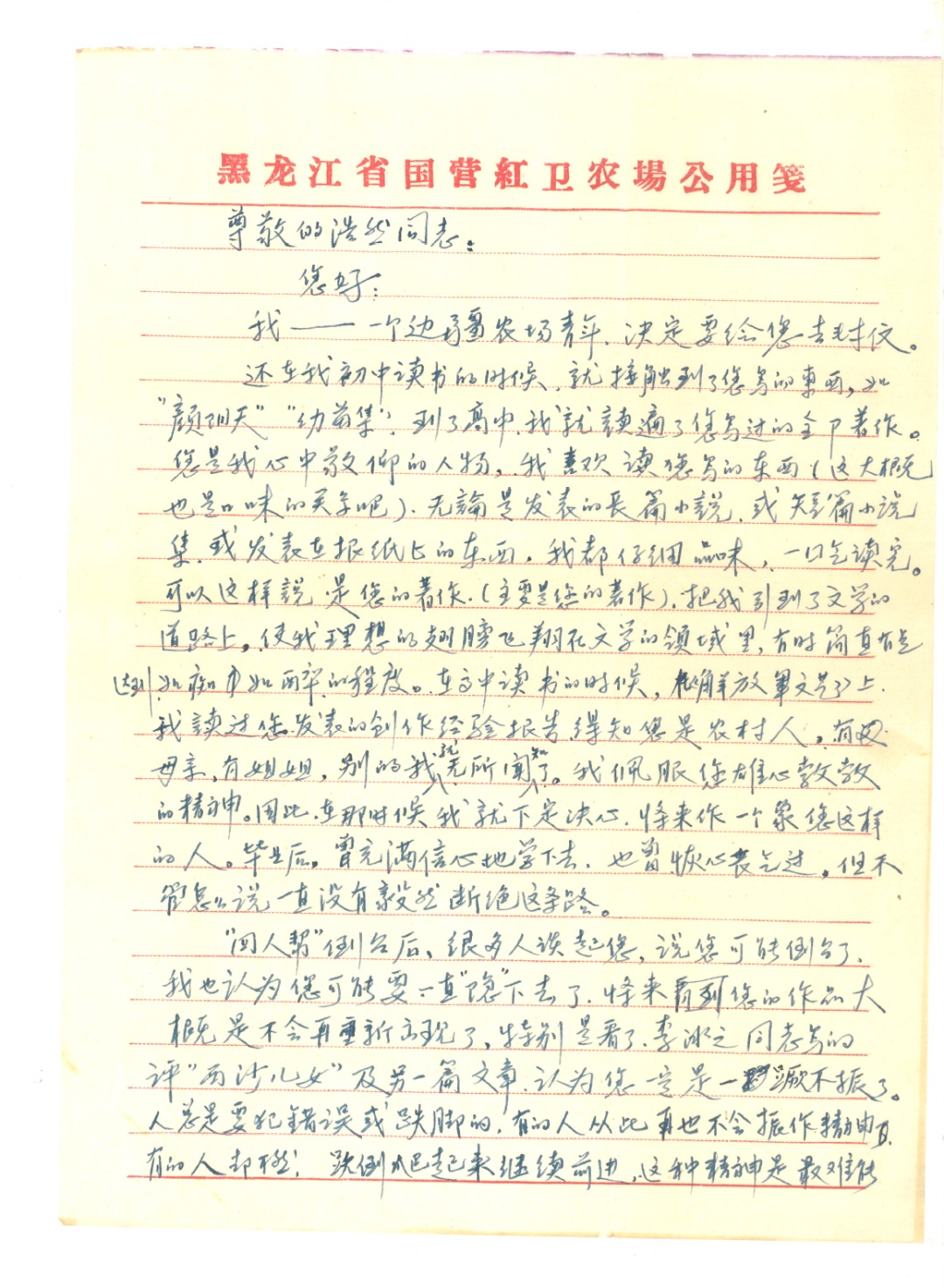 [24]读者孙立华在1979年2月9日信中写道:“已近一年的时间了,我似乎已养成了习惯,每当我拿到月刊《人民文学》或《北京文艺》,总是要先浏览那些目录,我多么希望能够早日看到您的作品啊!但很多次都使我失望的放下了。”